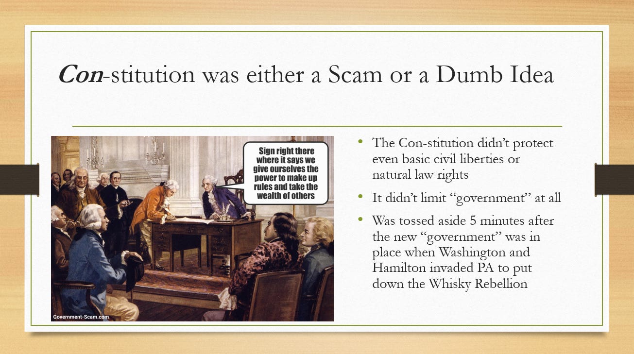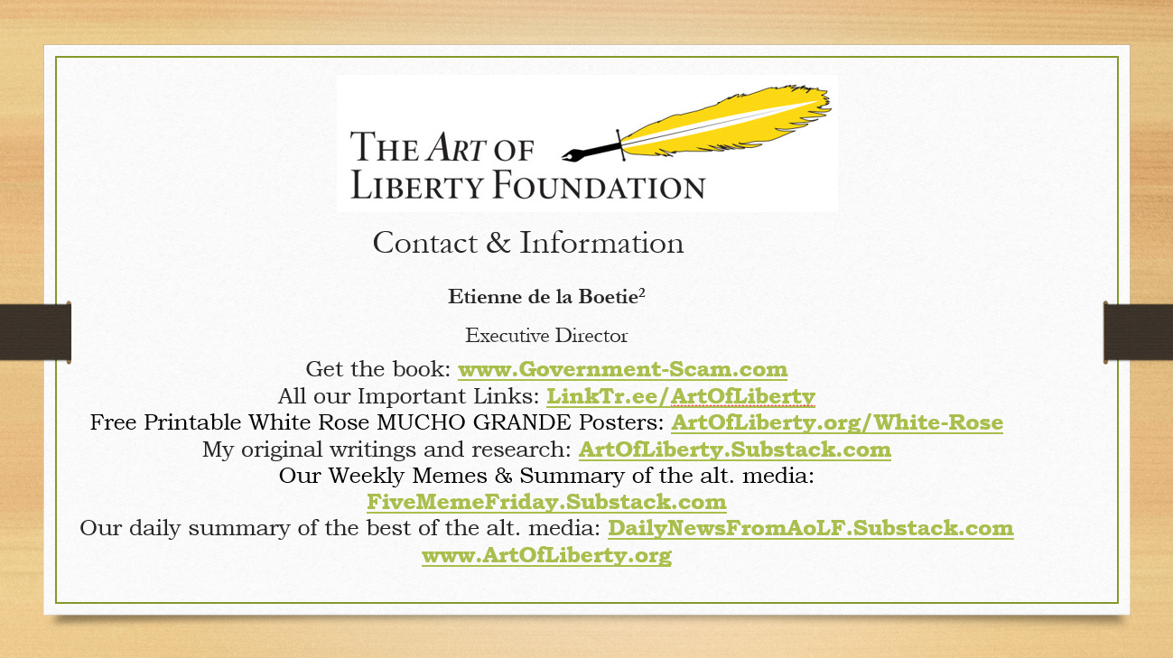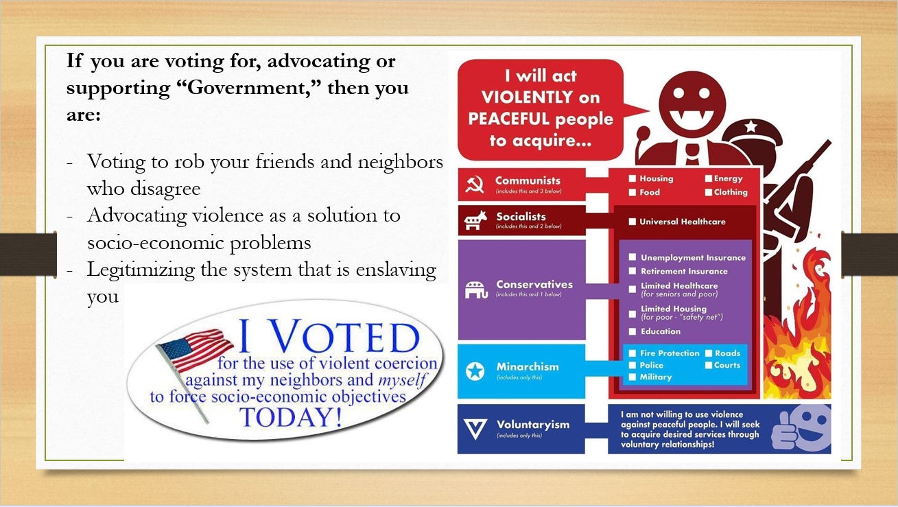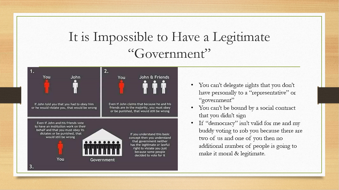 Here is a short 30-minute speech I gave at the Rebels for a Cause conference in Nashville last week. It is a great introduction to my work and the scam of “government.” Slides below